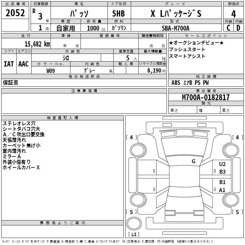 TOYOTA PASSO X L PACKAGE S - лот 2052