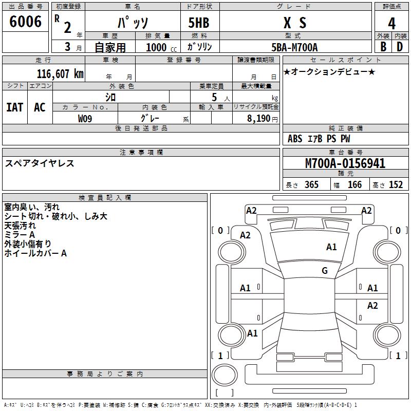 TOYOTA PASSO X S - лот 6006