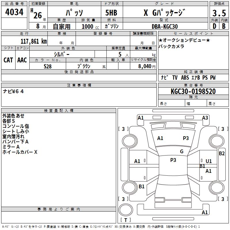 TOYOTA PASSO X G PACKAGE - лот 4034