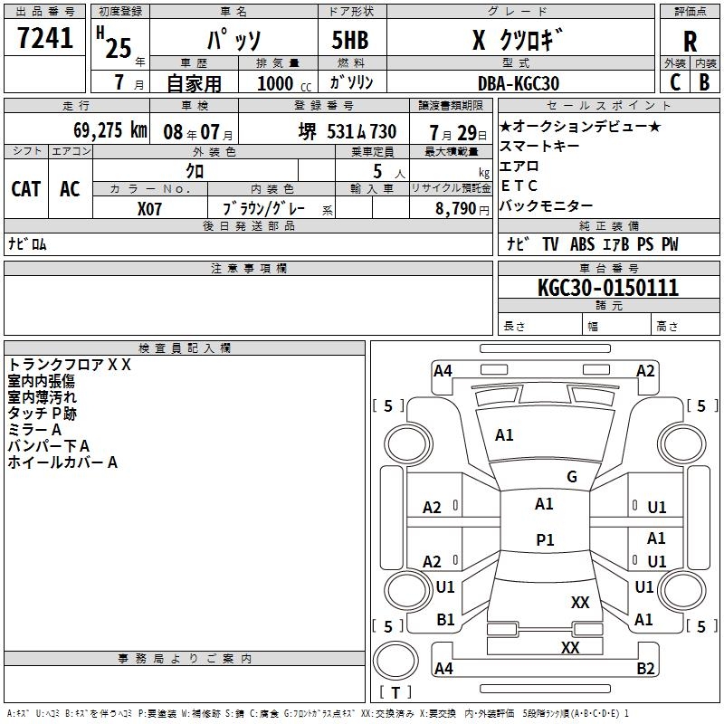 TOYOTA PASSO XKTSUROGI - лот 7241