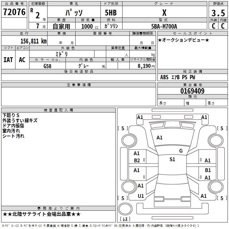 TOYOTA PASSO X - лот 72076