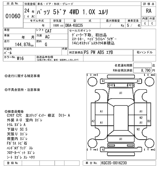 TOYOTA PASSO 1.0X YURURI - лот 1060
