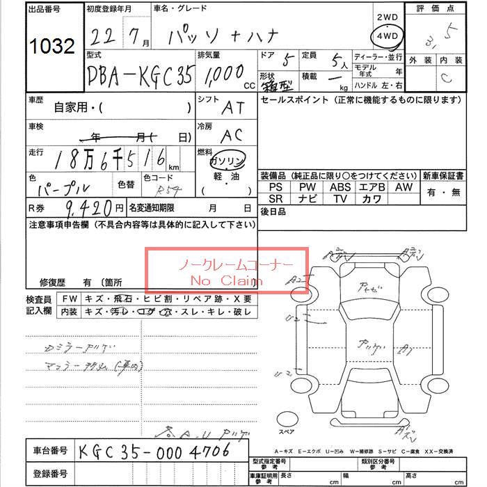 TOYOTA PASSO 4WD +Hana - лот 1032