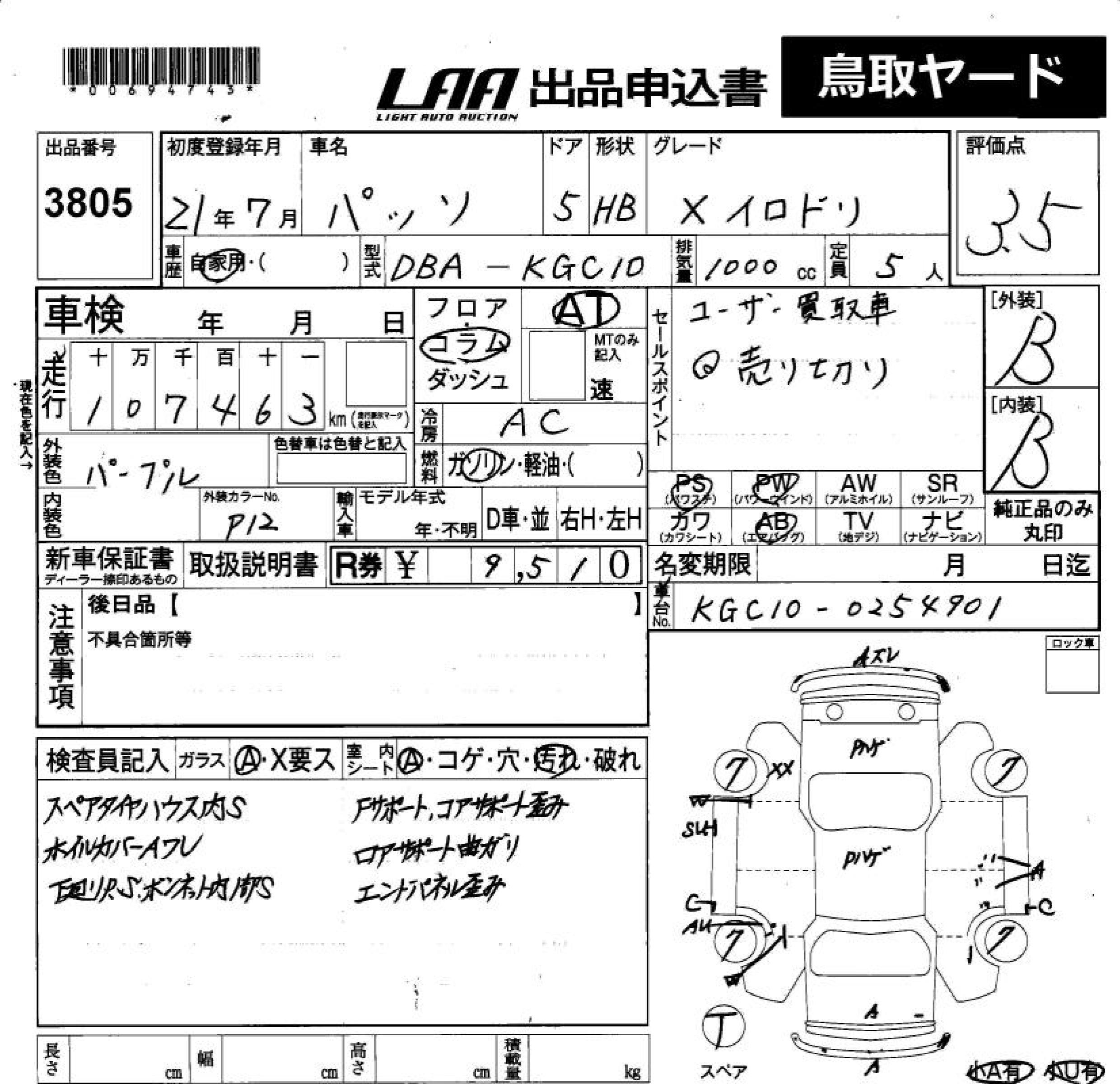 TOYOTA PASSO X IRODORI - лот 3805