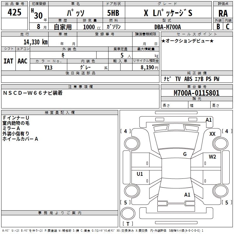 TOYOTA PASSO X L PACKAGE S - лот 425