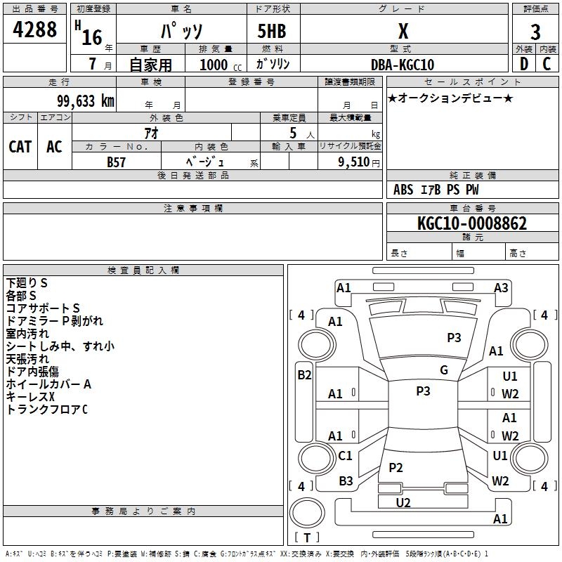 TOYOTA PASSO X - лот 4288