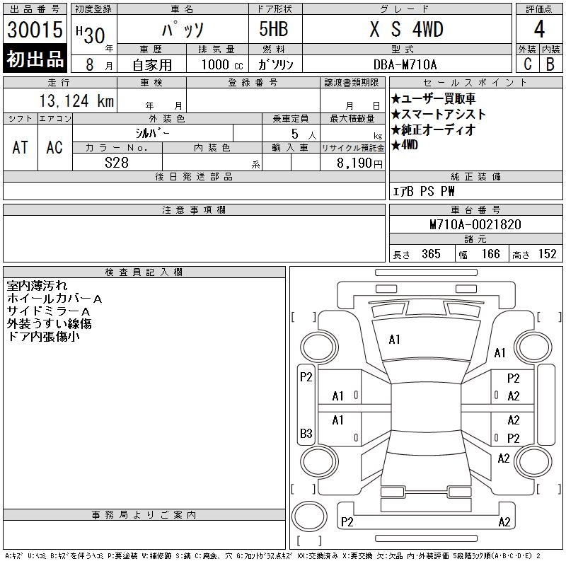 TOYOTA PASSO X S 4WD - лот 30015