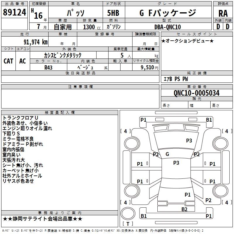 TOYOTA PASSO G F PACKAGE - лот 89124