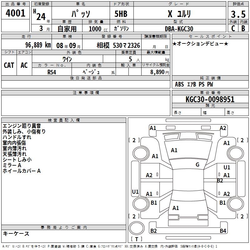 TOYOTA PASSO X YURURI - лот 4001
