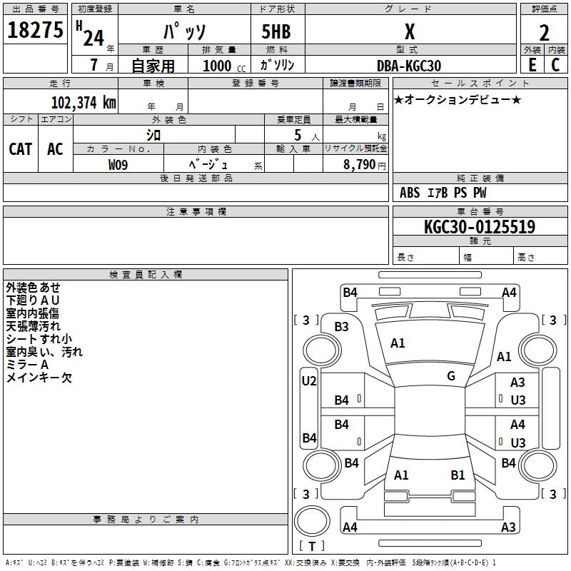 TOYOTA PASSO X - лот 18275