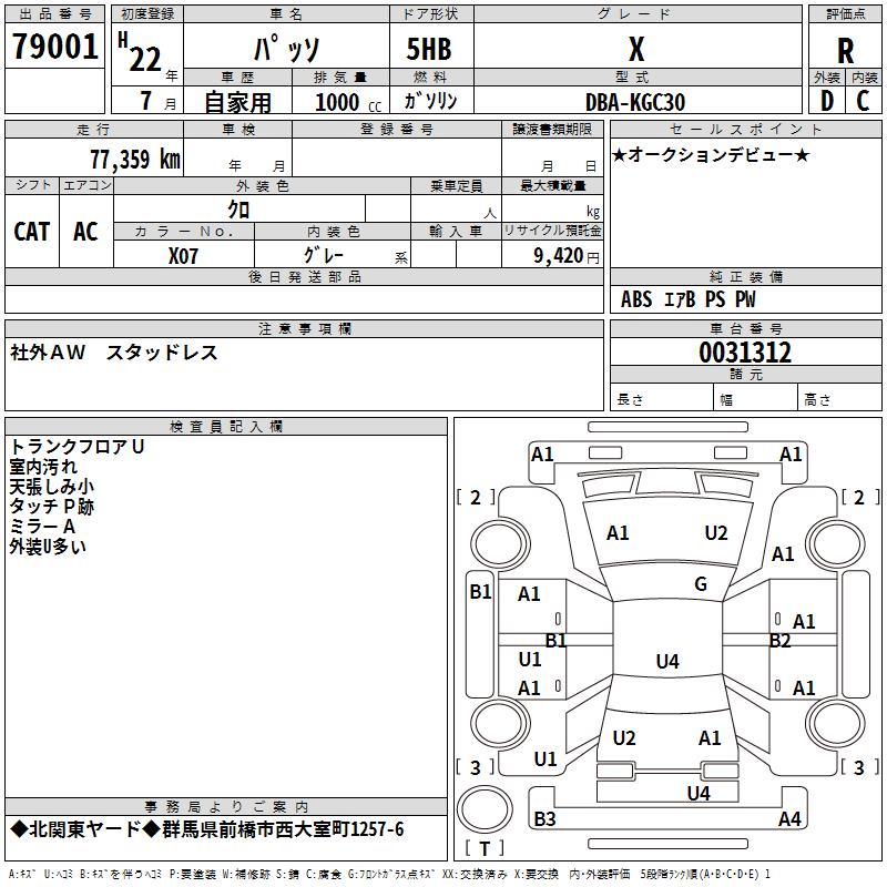 TOYOTA PASSO X - лот 79001