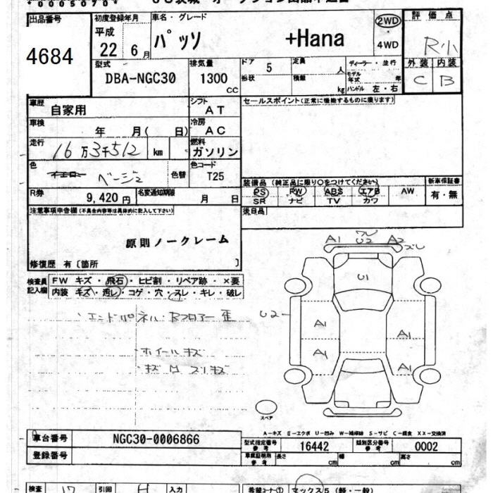 TOYOTA PASSO +Hana - лот 4684