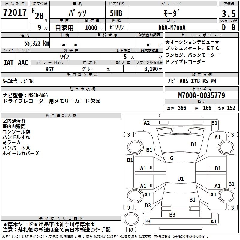 TOYOTA PASSO MO-DA - лот 72017