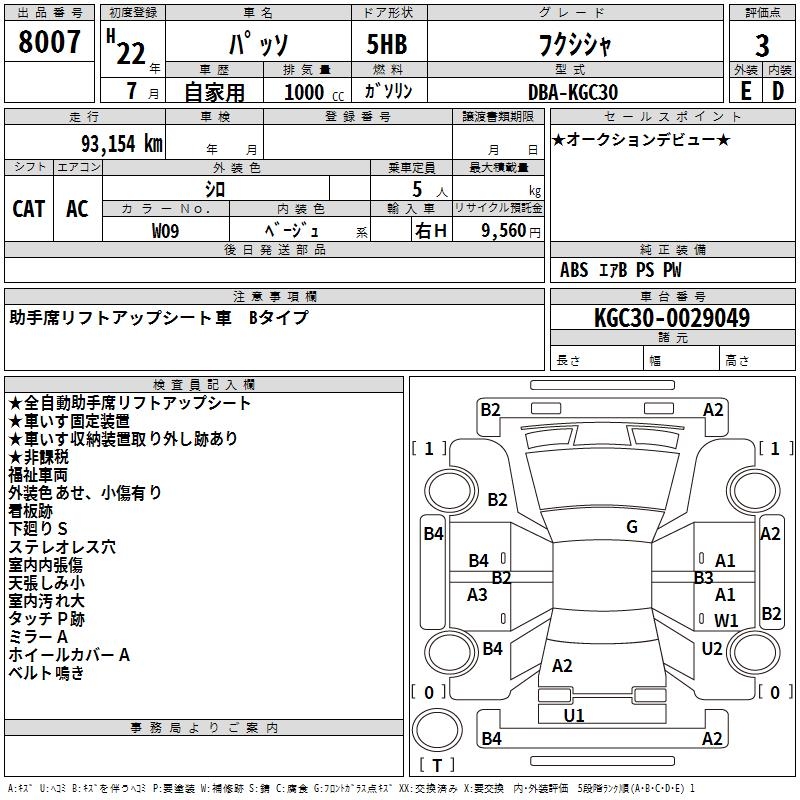 TOYOTA PASSO WELLFARE CAR - лот 8007