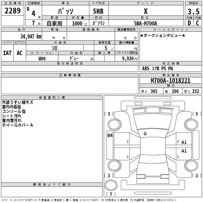 TOYOTA PASSO X - лот 2289