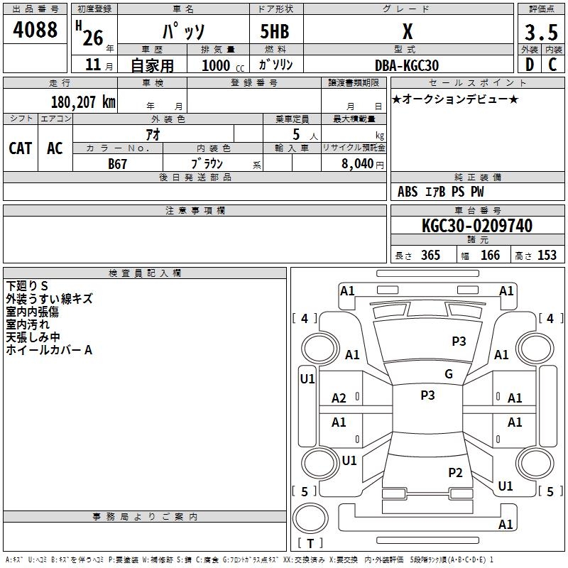 TOYOTA PASSO X - лот 4088