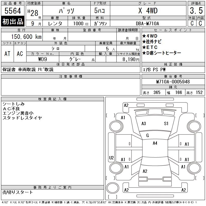 TOYOTA PASSO X 4WD - лот 5564