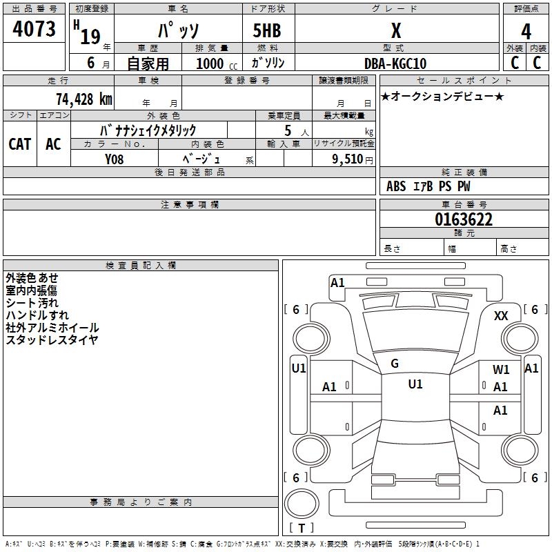 TOYOTA PASSO X - лот 4073