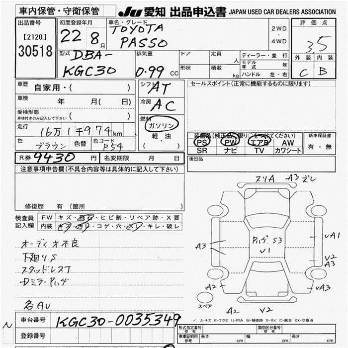 TOYOTA PASSO - лот 30518