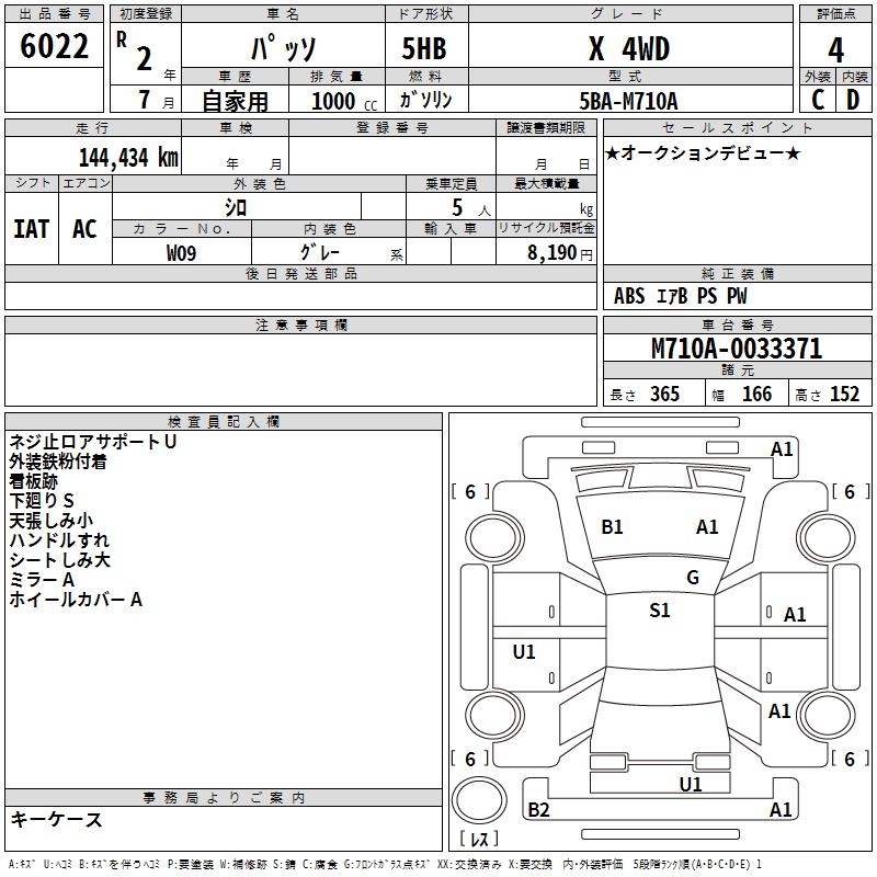 TOYOTA PASSO X 4WD - лот 6022
