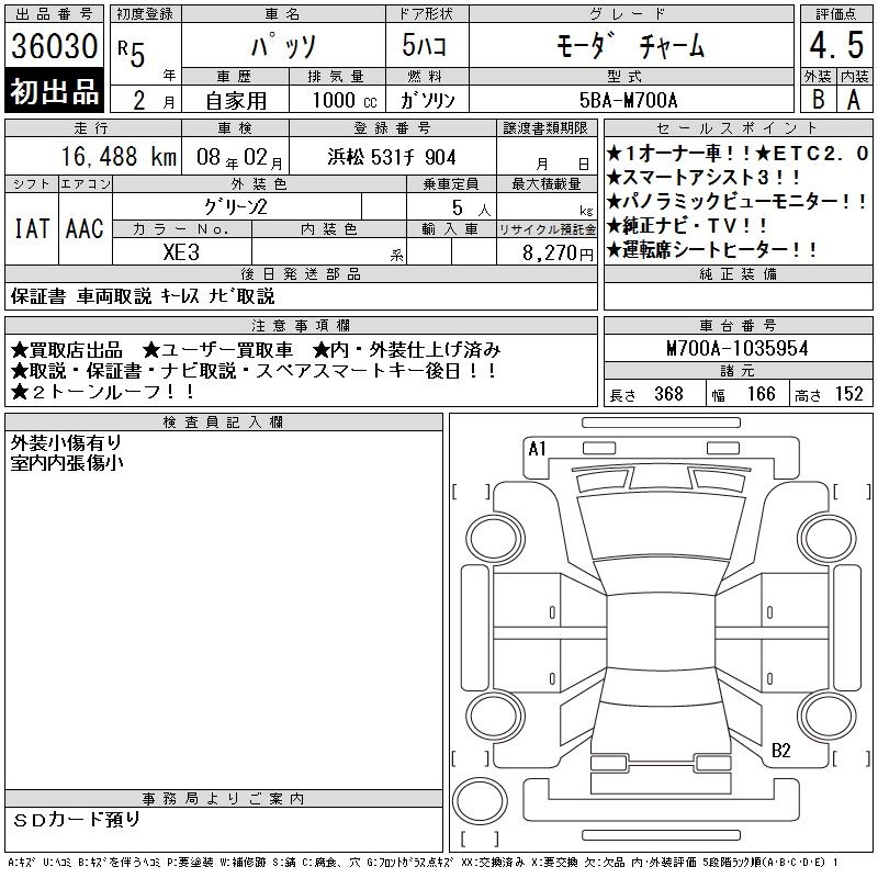 TOYOTA PASSO MO-DA CHARM - лот 36030