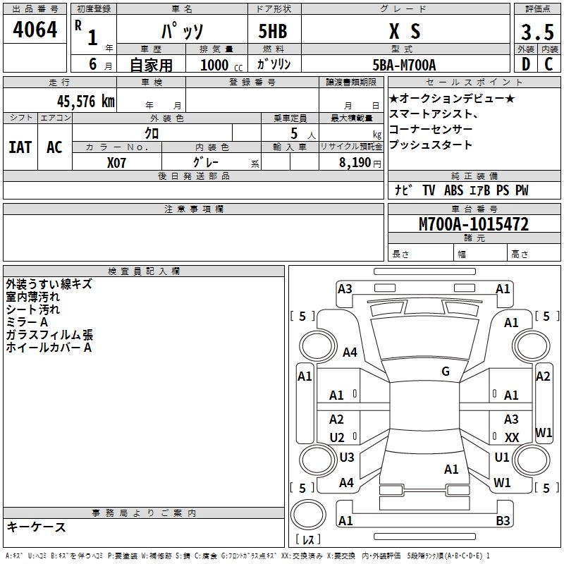 TOYOTA PASSO X S - лот 4064