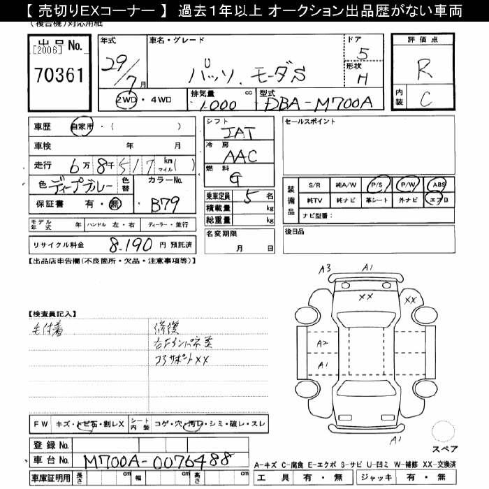 TOYOTA PASSO MO-DAS - лот 70361