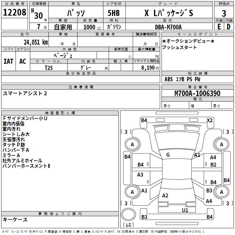 TOYOTA PASSO X L PACKAGE S - лот 12208
