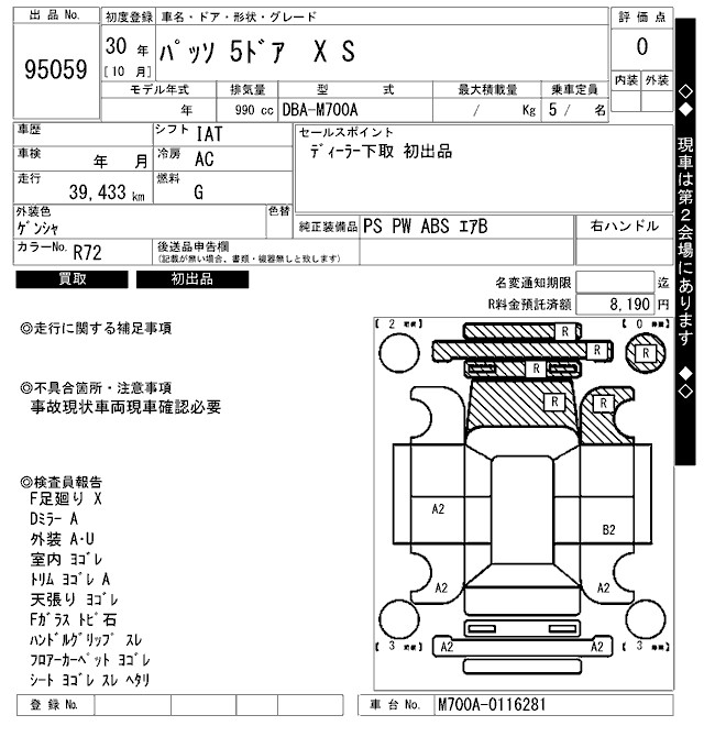 TOYOTA PASSO X S - лот 95059