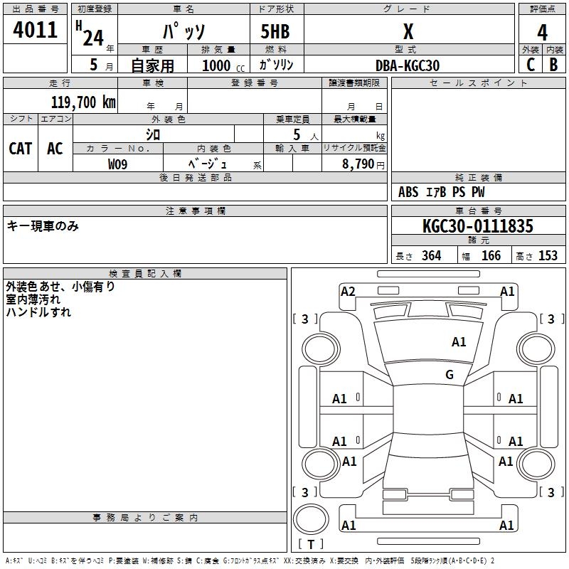 TOYOTA PASSO X - лот 4011