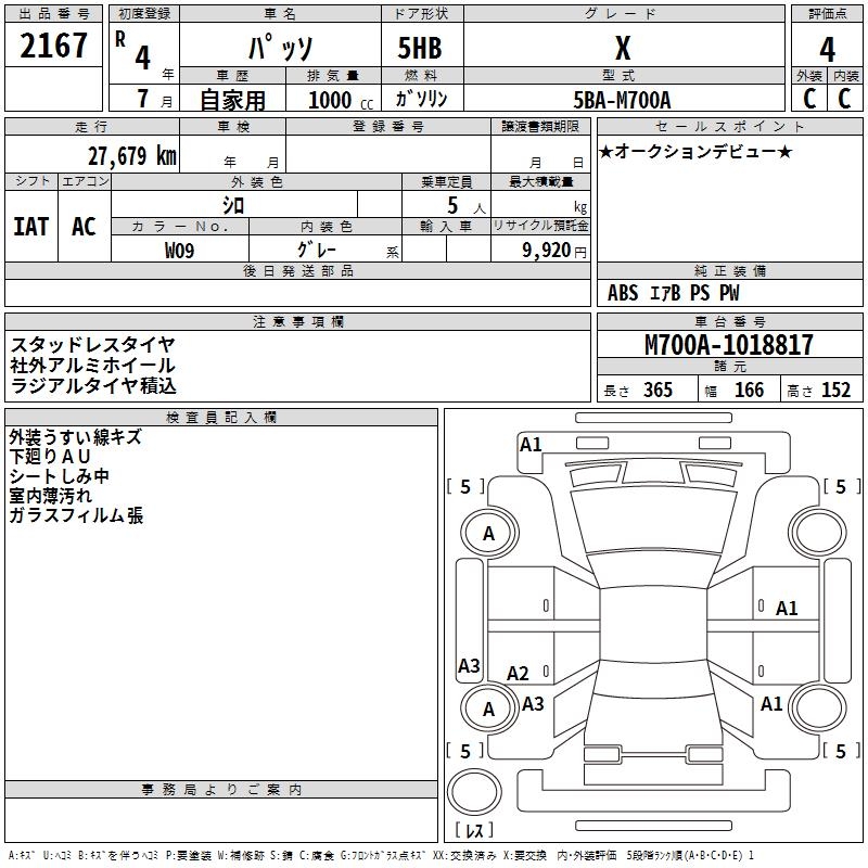 TOYOTA PASSO X - лот 2167