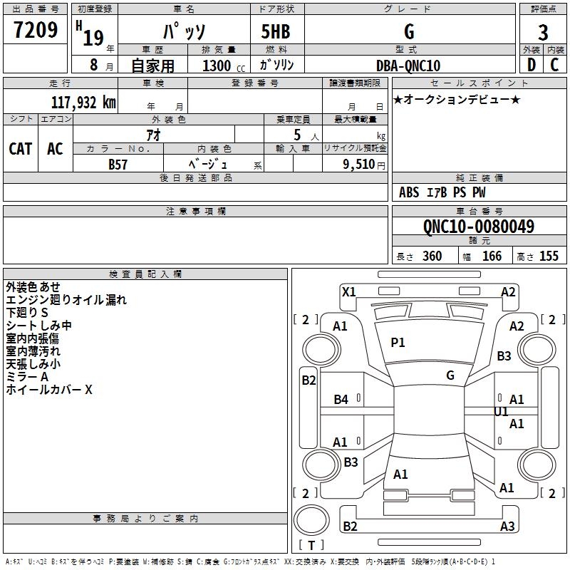 TOYOTA PASSO G - лот 7209