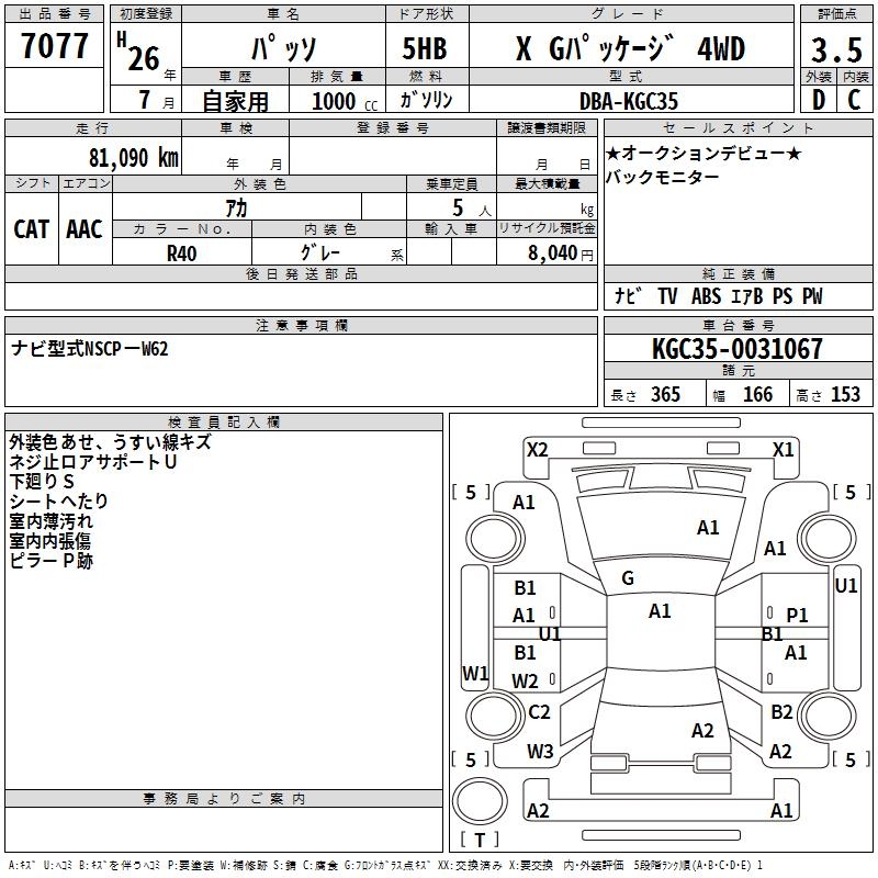 TOYOTA PASSO X G PACKAGE 4WD - лот 7077