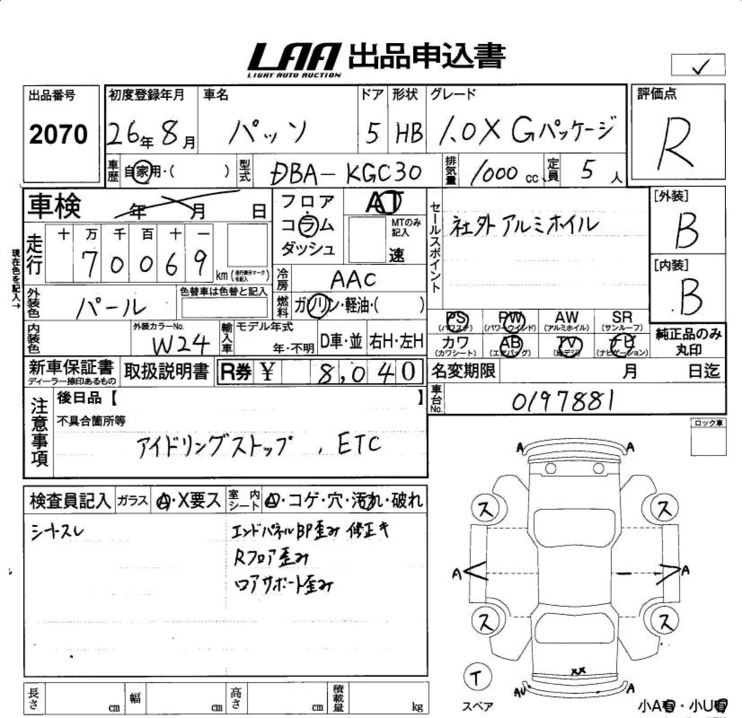 TOYOTA PASSO 1.0X G PACKAGE - лот 2070