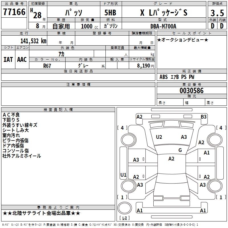 TOYOTA PASSO X L PACKAGE S - лот 77166