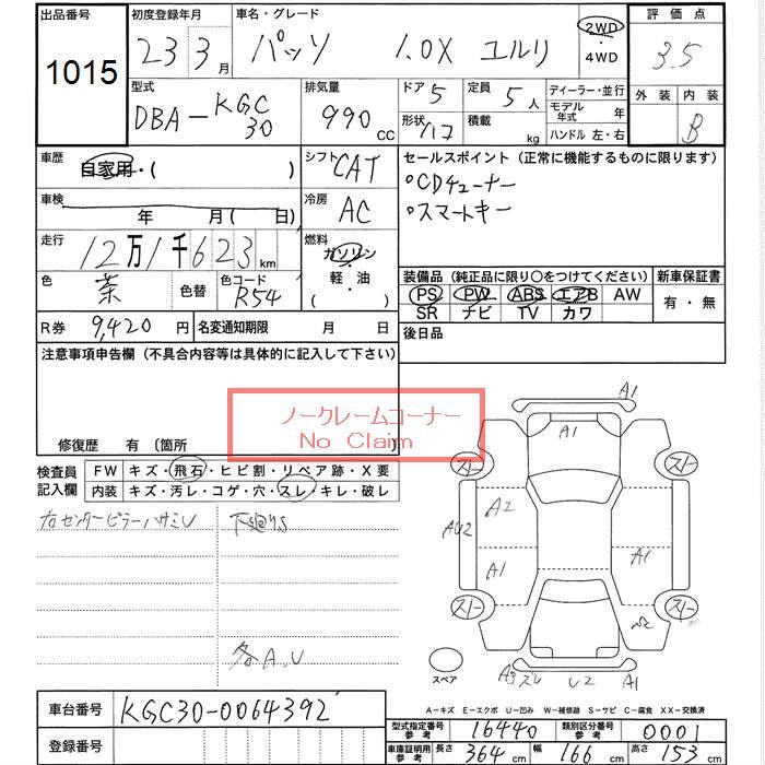 TOYOTA PASSO 1.0X YURURI - лот 1015