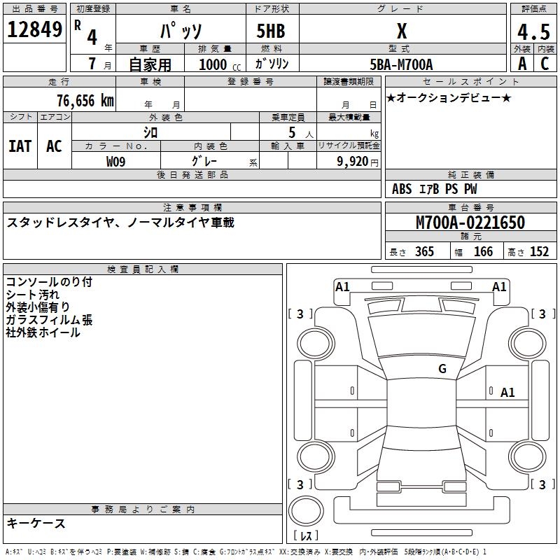 TOYOTA PASSO X - лот 12849