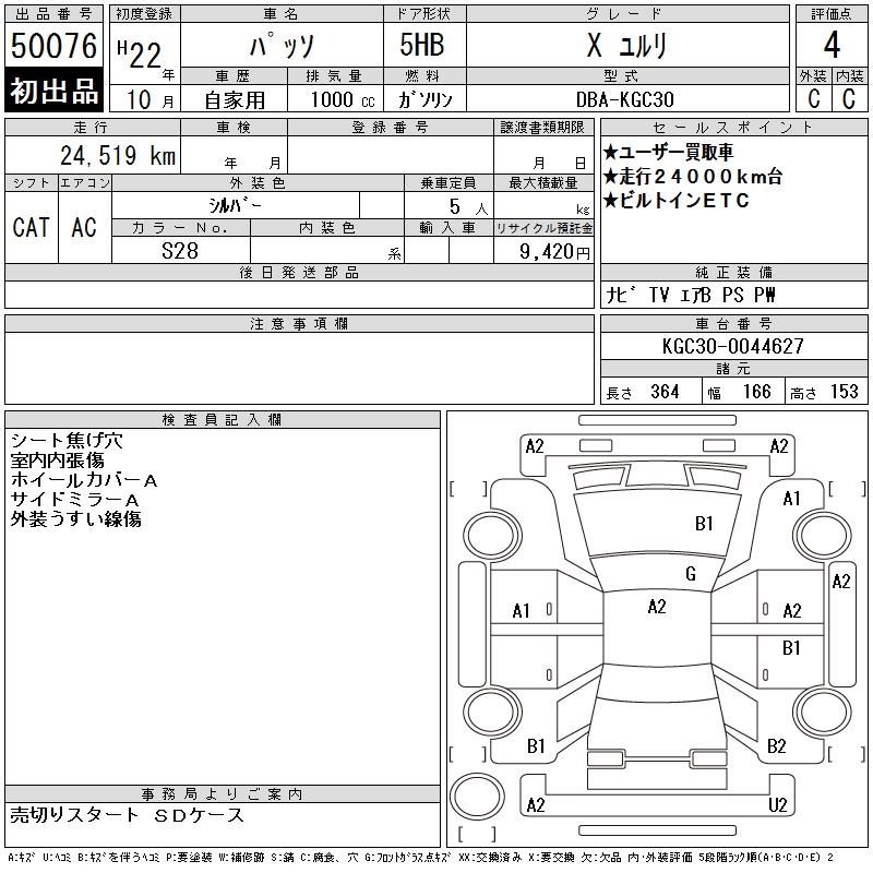 TOYOTA PASSO X YURURI - лот 50076