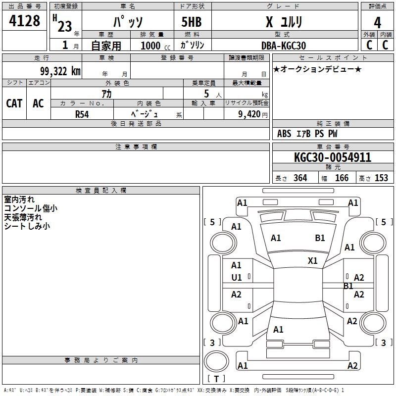 TOYOTA PASSO X YURURI - лот 4128