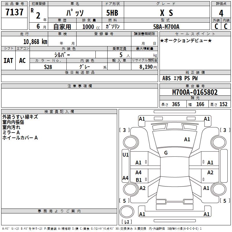 TOYOTA PASSO X S - лот 7137