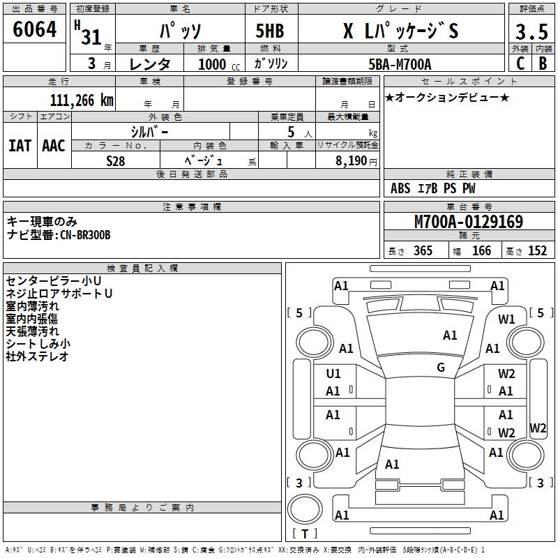 TOYOTA PASSO X L PACKAGE S - лот 6064