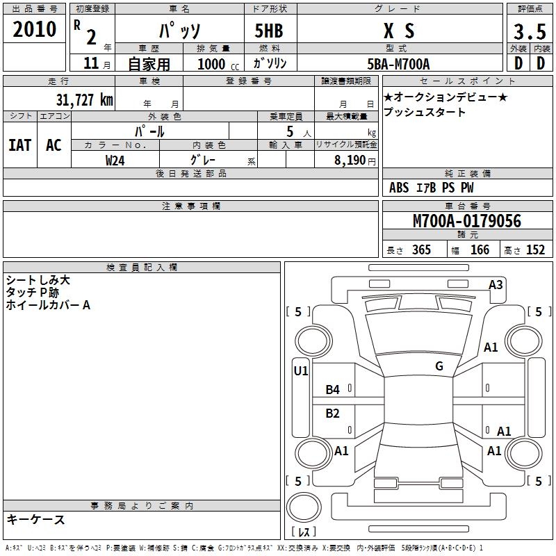 TOYOTA PASSO X S - лот 2010