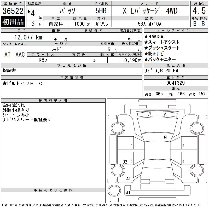 TOYOTA PASSO X L PACKAGE 4WD - лот 36522