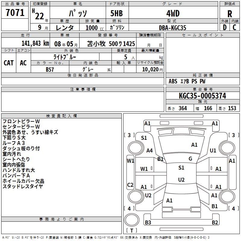 TOYOTA PASSO 4WD - лот 7071