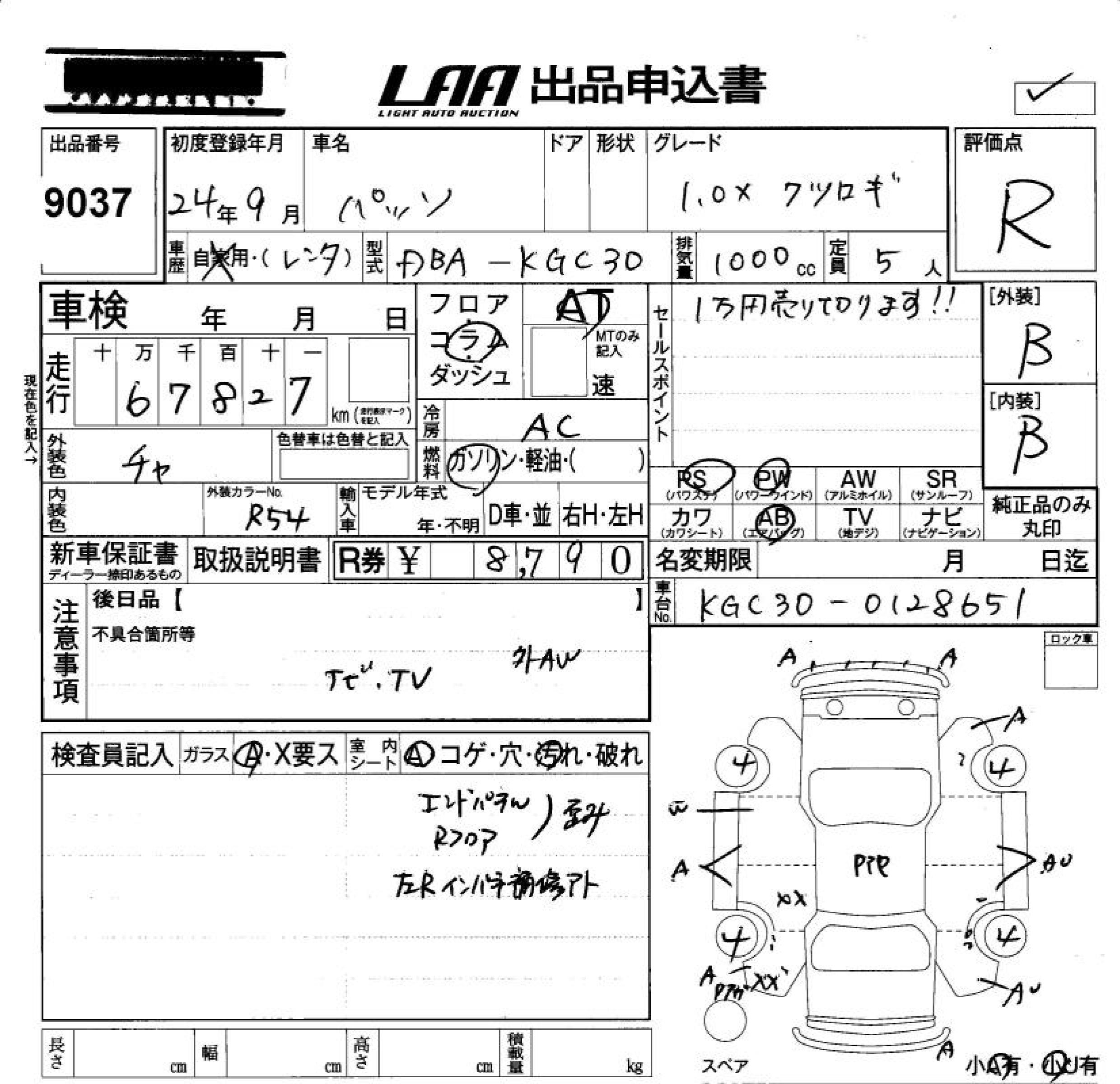 TOYOTA PASSO XKTSUROGI - лот 9037
