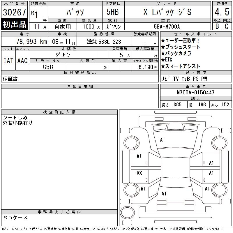 TOYOTA PASSO X L PACKAGE S - лот 30267