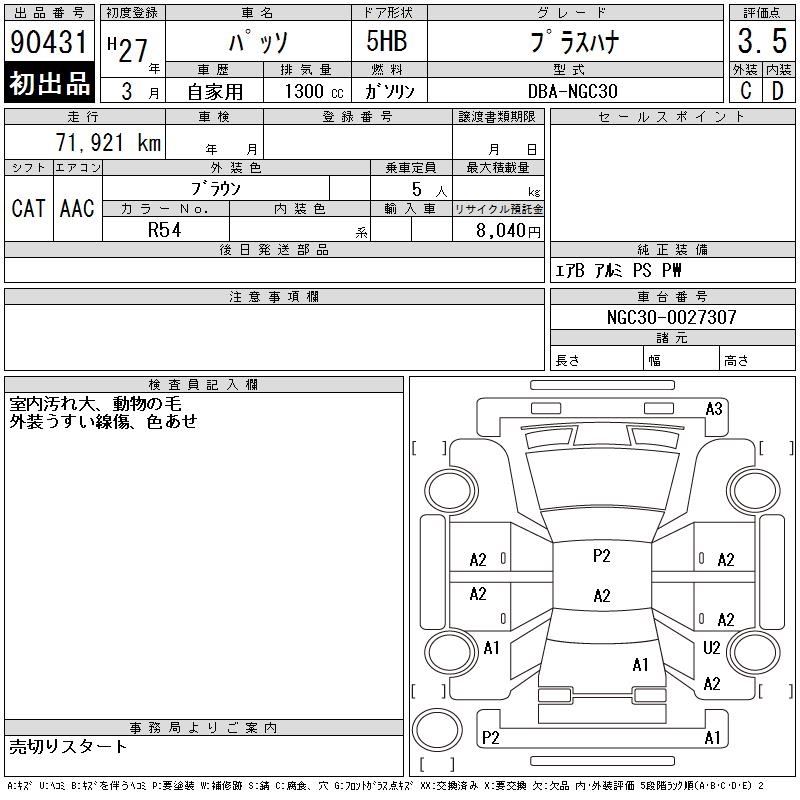 TOYOTA PASSO +HANA - лот 90431