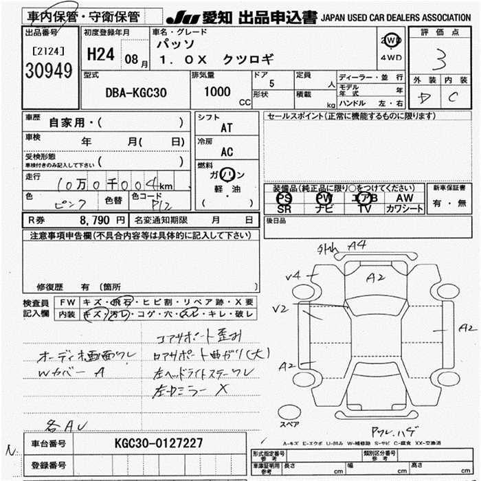 TOYOTA PASSO 1.0XKTSUROGI - лот 30949