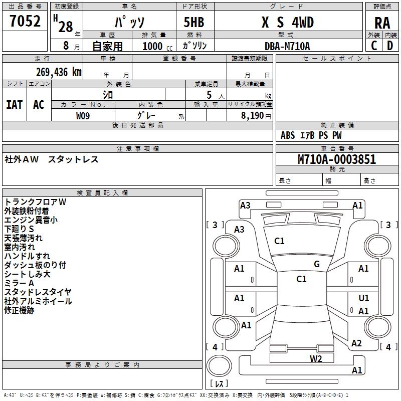TOYOTA PASSO X S 4WD - лот 7052