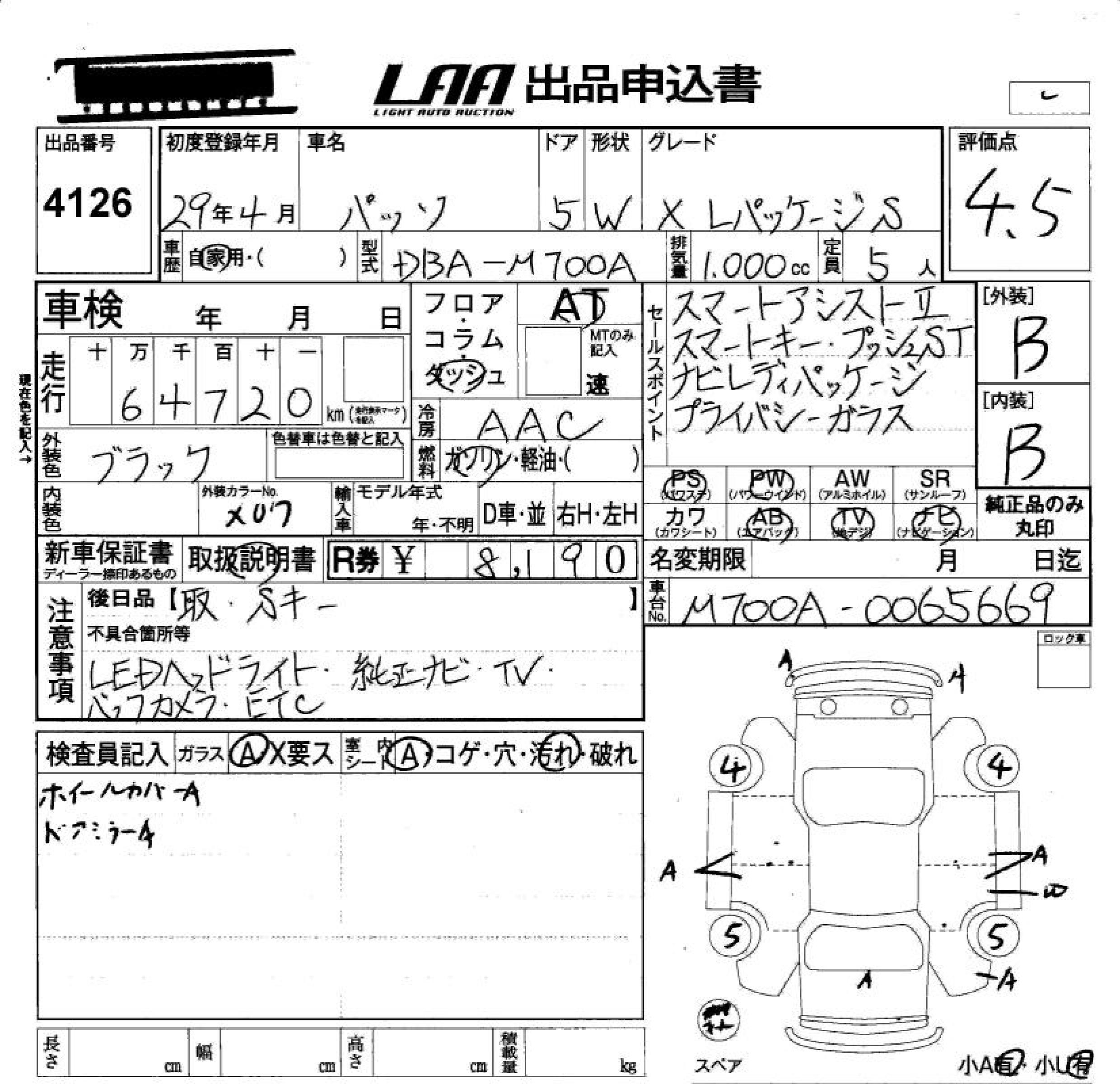 TOYOTA PASSO X L PACKAGE *S - лот 4126